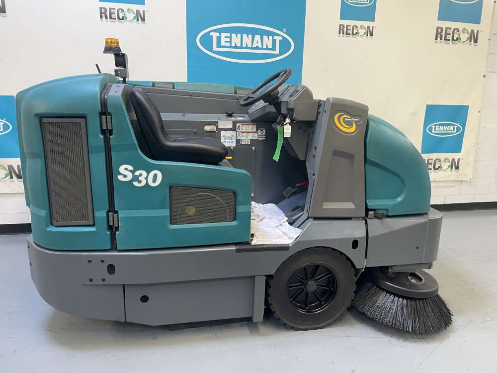 Tennant Certified Pre-Owned S30 Rider Sweeper. Clean in one pass, indoors and outdoors, even in the toughest environments. The S30 is simple to operate and maintain for both heavy and...
